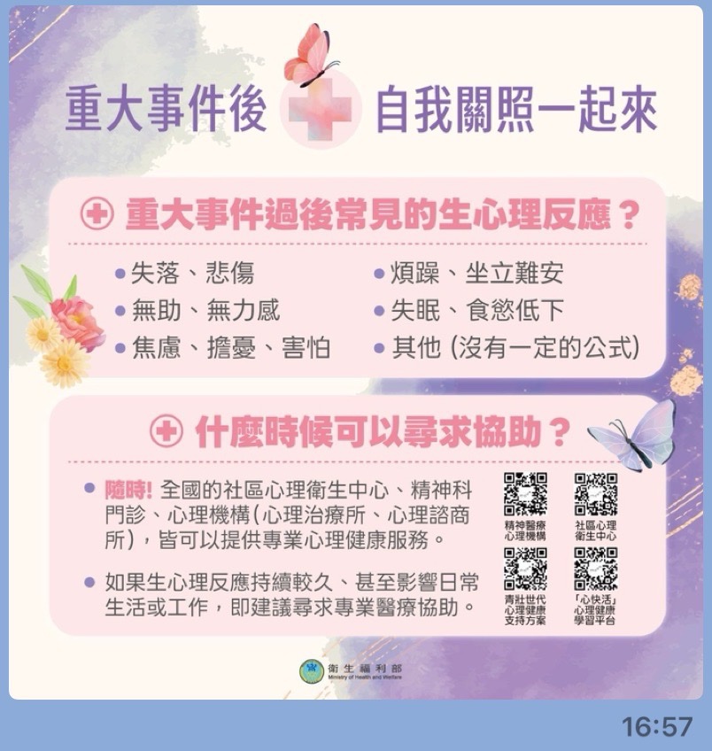【衛福部心理健康支持方案】-陪你走過事件~重大事件後關照一起來