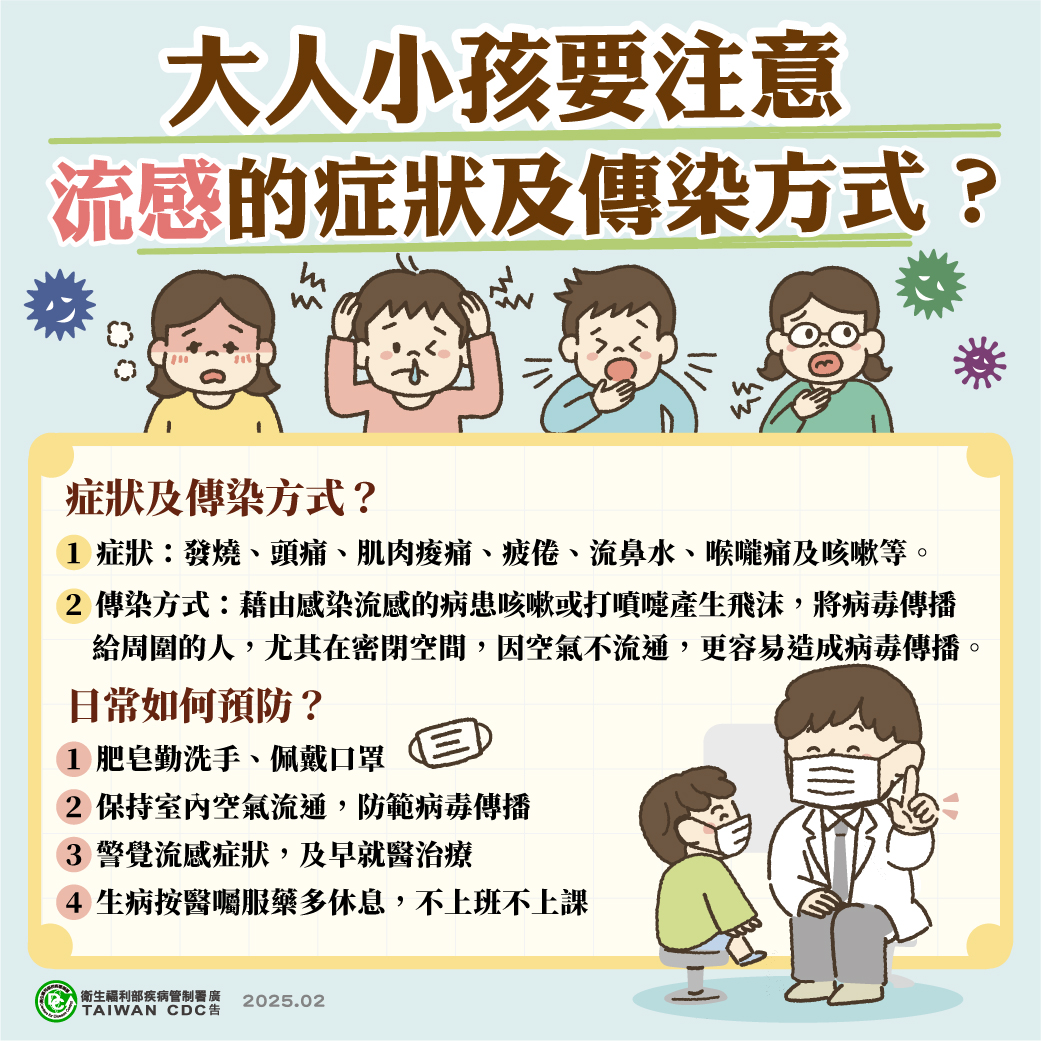 冬天是流感群聚疫情好發季節,為維護校園健康安全,本校配合衛生福利部疾病管制署指引,提醒教職員工落實個人防護措施: