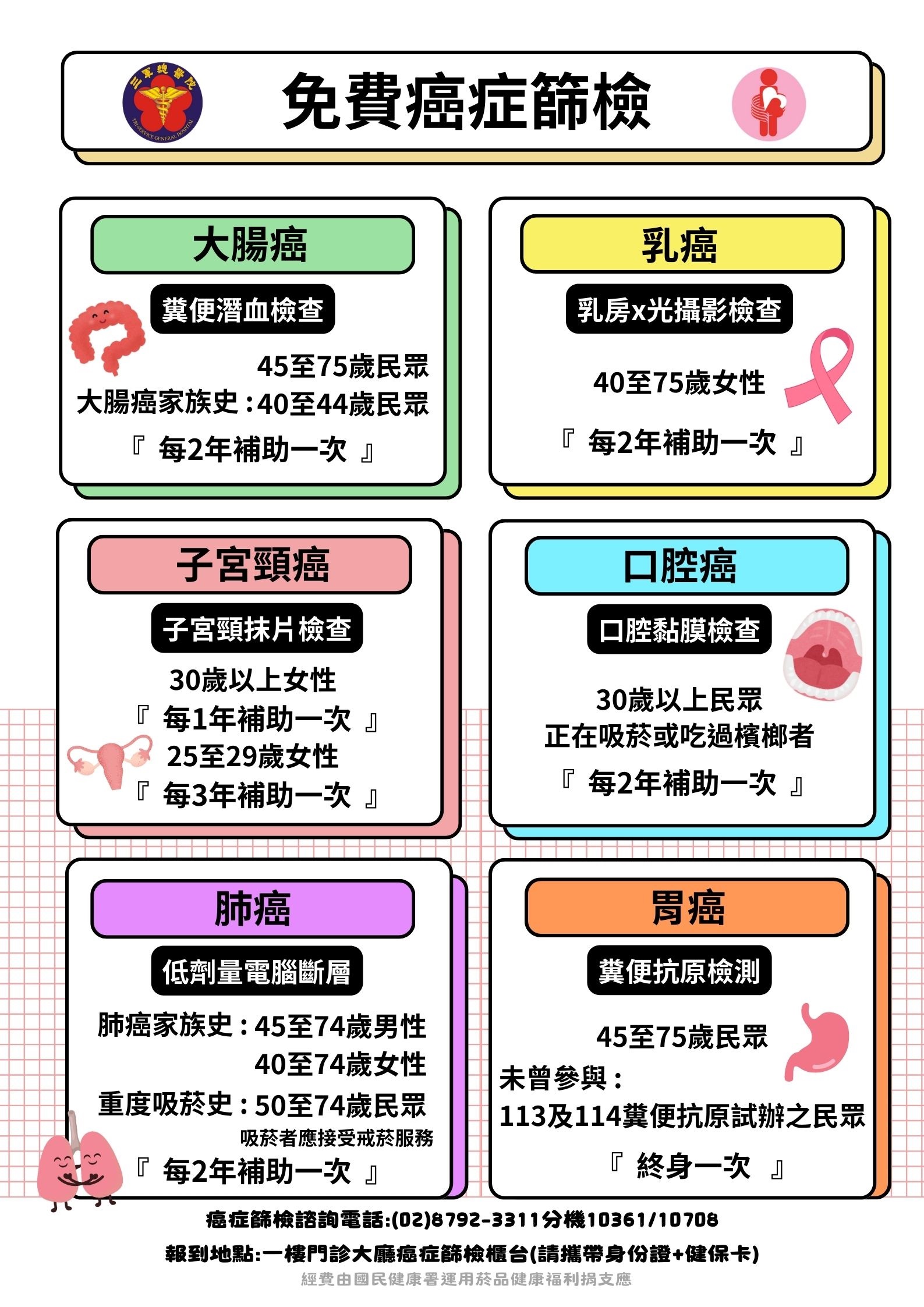 三軍總醫院115年免費癌症篩檢資訊如下圖